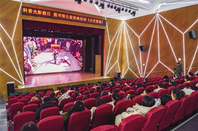 本报讯 (记者 丁亚琴) 2日,由市科协、市电影公司、市图书馆联合主办的“科普光影假日”图书馆公益放映计划新年首场活动在市图书馆举行,众多市民携孩子到场,在光影陪伴下度过充实又有意义的假日时光。