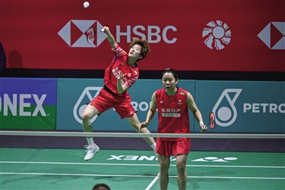 1月7日,在马来西亚吉隆坡举行的2026年马来西亚羽毛球公开赛女双第一轮比赛中,中国组合贾一凡/张殊贤2∶0战胜中国台北组合许雅晴/宋祐媗,晋级下一轮。图为贾一凡/张殊贤(左)在比赛中。 新华社发