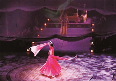 “整场演出沉浸又有梗,布景、舞美、杂技都让人眼前一亮!”有观众在观剧后发出这样的感叹。该剧以独属于现场艺术的表达方式,构建了荧屏无法呈现的视觉奇观。例如华妃悲情“下线”一幕,演员借助威亚悬空行走;甄嬛与果郡王情感戏份,通过高空绸吊与双人舞演绎。这些创新的表达方式,在高密度叙事中带来张弛有度的观演体验。