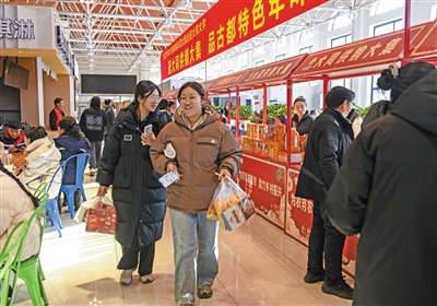 “没想到在校园里就能买到这么地道的大同味道!”湖北籍学生小刘提着刚采购的沙棘汁与黄米凉糕,兴奋地说。为贴合大学生消费习惯,本次年货大集特别设置了小包装特产与组合年礼,组织了黄花、黄芪、小米锅巴等本地特色农产品展销,还专门设立非遗文创产品专区,为师生搭建了解大同特优农产品和本土文化的平台。
