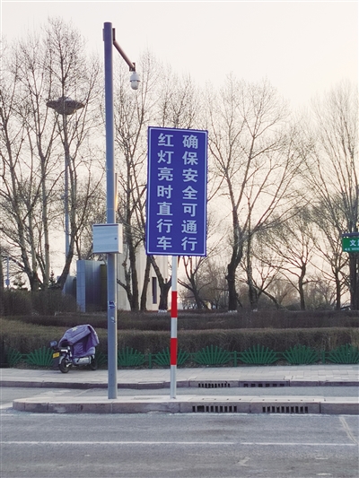记者昨日在文瀛路天泰街丁字路口看到,路口边设立的“红灯亮时直行车确保安全可通行”辅助标志牌十分明显,但途经此处的车辆在遇到红灯时只有少数机动车选择通行,其余机动车驾驶员则选择等绿灯亮起后通行。