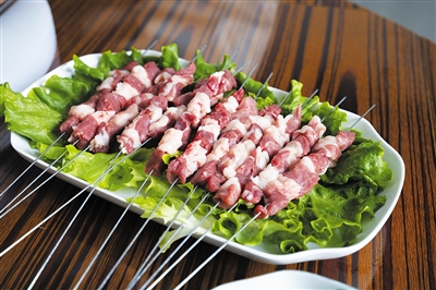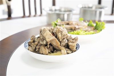 在大同,羊肉最“直白”的吃法当是涮羊肉了。在“兄弟牧鲜”的餐桌上,涮羊肉的锅底只有清水,肉卷则是由前腿肉和羊腩组成、严格按照“二肥八瘦”的标准制成。用筷子挑上几片厚薄均匀的羊肉片,放入开着水花的涮锅中,羊肉片在水中散开的一瞬间,又紧缩成花朵一般,翻几个滚儿便可捞出来。此时的羊肉鲜嫩多汁,再蘸上精心调制的加了韭菜花、腐乳的麻酱调料,一口下去,羊肉的鲜香、蘸料的丰富口感,与火锅的热气腾腾完美结合,让人陶醉,欲罢不能。涮羊肉最能考验羊肉的品质,“兄弟牧鲜”的羊肉完全可以“胜任”——无需复杂的调料,方能凸显羊肉的本真。