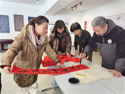 本报讯 (记者 双红) 近日,平城区老年大学党员志愿服务队携手中惠宜和物业,在凯德世家小区活动中心开展马年首场“义写春联送祝福”活动,10余名书法爱好者挥毫泼墨,将满载新春期许的春联与“福”字送到居民手中。