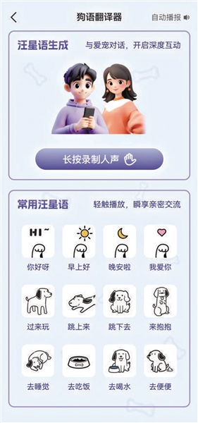如今,利用科技手段增强与宠物的情感互动,成为不少养宠人的选择。 28岁的小蕊,家中“猫狗双全”。有时,她会使用一款能够“翻译”猫语狗语的软件,隔空呼唤自家宠物,或是招呼它们开饭,“这些简单的指令,我家宠物能‘听懂’并很好地执行。”