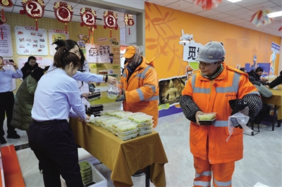 据悉,市城市管理局工作人员和户外驿站运营者提前筹备,准备了腊八粥和凉菜各150份。“寒冬腊月,户外工作者冒着严寒工作十分辛苦,我们准备了腊八粥和小菜,让大家开开心心过个节。”户外驿站工作人员说。