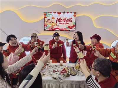 本报讯 (记者 孙露) 腊八当日,平城区新华街道岳秀园社区活动室粥香四溢、暖意融融,一场别开生面的“慢品腊八‘冰淇淋’——社区与环卫工人共建美好家园”主题活动在此举行,10余名环卫工人受邀走进社区,与工作人员共品腊八“冰淇淋”,畅谈家园建设。