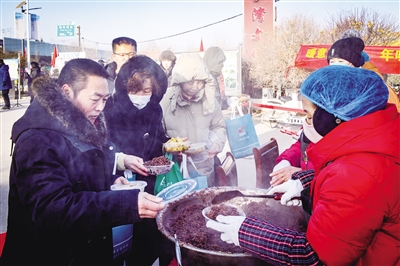 本报讯 (记者 段雨萌) 26日清晨,平城区白登山街道金家湾村一派热气腾腾的景象。大铁锅咕嘟作响,杂粮腊八粥的甜香漫溢村落,环卫工人、快递小哥与村民、市民们手捧热粥,脸上满是笑意。当日,金家湾村“暖意迎新春、年味‘金’满家”腊八系列活动正式启幕。