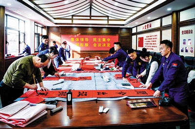 29日,平城区委宣传部、区文联组织书法家协会骨干,走进古城消防救援站开展“迎春送福”活动。书法家们挥毫创作融合消防职业特色的春联与福字,为营区增添喜庆氛围。