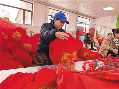 “我在这儿已经干了六七年了,每天能收入120多元,今年一腊月少说也能收入个四五千元。在家门口就能挣钱,既能照顾家里,每月还有稳定收入,日子越过越有奔头啦。”吕永红一边熟练地为灯笼套绸布,一边笑着说道,话语里满是幸福感。如今,村里和吕永红一样的农村妇女有40多个。
