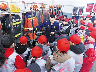 上午9时,活动在消防员整齐的队列与热烈的欢迎声中拉开序幕。消防站负责人简要介绍了队站基本情况,并对小记者的到来表示欢迎。随后,大家在消防员的引导下,有序参观了消防车辆、救援器材、执勤宿舍及训练场地。在装备展示环节,消防员详细讲解了不同消防车的功能及随车器材用途,多名小记者在消防员指导下试穿了厚重的消防战斗服,亲身体验了消防员肩负的“重量与责任”。