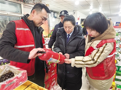 ▶ 近日,平城区柳港园东院社区联合派出所民警、国天物业对辖区所有商铺开展了拉网式安全大排查,做到隐患早发现、早整改,共同筑牢社区安全防线。 本报记者 杨翠叶