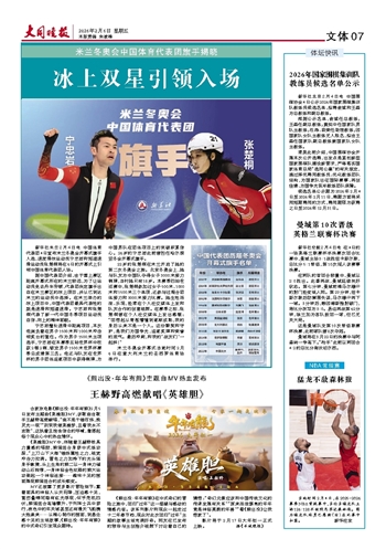 新华社米兰2月4日电 中国体育代表团4日宣布米兰冬奥会开幕式旗手人选,速度滑冰运动员宁忠岩和短道速滑运动员张楚桐将在6日的开幕式上引领中国体育代表团入场。