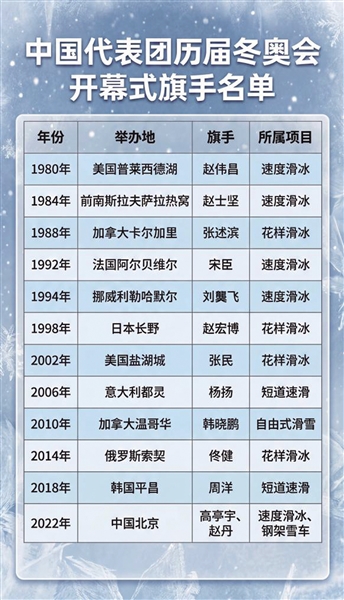 据中国代表团介绍,由于雪上赛区距离开幕式所在的米兰较远,为了让运动员免去舟车劳顿,代表团决定旗手出自在米兰赛区的冰上项目,并从已到达米兰的运动员中选择。在米兰举办的冰上项目中,中国代表团最具代表性的就是速滑和短道速滑。宁忠岩和张楚桐代表了新一代中国冬季项目运动员自信、向上的精神面貌。
