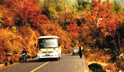 塔川是以红叶闻名天下的,与北京香山、四川九寨沟、新疆喀纳斯并称为全国四大红叶胜地。但与其它3处不同,塔川的红叶并不远离人间烟火,疏疏密密全在田野之中,山丘之上,民居之间,或者就在公路两边,从大名鼎鼎的宏村出发,走着走着,就到了。也有骑行爱好者,租辆自行车,边骑边赏,边吸纳着山村的清淳空气,也许昨天还在心急火燎地赶一份报表或在都市红尘间疲惫奔走,一下子置身于如此悠然的如画美景之中,真有世外桃源之感。