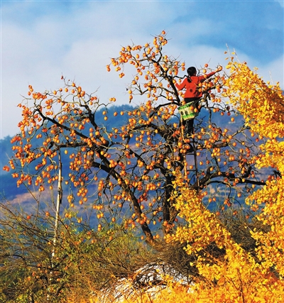 若将粉墙黛瓦、底蕴深厚的皖南宏村比作一幅水墨,那么初冬时候的塔川就是一幅色彩浓烈、绚烂至极的油画了;若将宏村比作一位饱经沧桑、须眉皆白的睿智长者,那么距宏村仅2公里的塔川就是个爱打扮、爱俏丽的满面霞彩的小媳妇,或者就是长者家里最美丽得宠的小女儿也未可知。