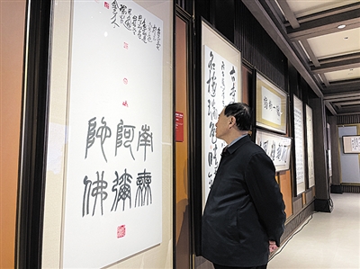 简短的启动仪式之后,与会人员和一些前来就餐的顾客饶有兴致地参观书法作品展。步入展厅,墨香弥漫,或篆隶古朴、或行草飘逸、或魏碑雄强,各具风姿却共蕴“和雅”之魂。兰亭名家们以古都大同历史文化、名家诗篇、风土人情为创作灵感,让观者在笔墨间品读古都大同的文化传承。展品中我国著名画家、书法家黄永玉的两幅作品颇引人注目;一位欣赏了我国著名漫画家方成的书法作品后感慨道:“都知道方成画作不凡,没想到书法作品也有如此造诣”;我市著名书法家郜孝的一幅“古寺佛国庄法相,名楼瑞色映钟声”更是大气磅礴,气象万千。