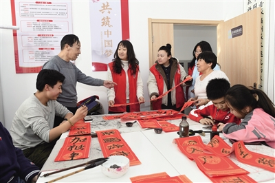 本报讯 (记者 辛雅君) 为丰富社区未成年人精神文化生活,传承中华优秀传统文化,营造欢乐祥和、文明向上的节日氛围,12日,平城区迎宾街道永安里、迎宾路、绿园、华安社区联合开展“绘梦新时代,墨香迎新春”主题活动。