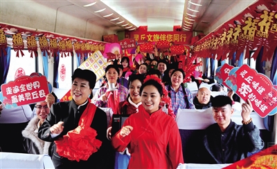 2月10日,灵丘县文旅局联合铁路部门,在穿行于京原线的8817/8818次列车上,举办“贺岁专列 灵丘文旅伴您行”主题活动,诚邀各地游客走进灵丘、乐享新春。 活动中,灵丘县文旅局组织的文艺小分队身着盛装亮相,为旅客送上一场沉浸式文旅盛宴。民俗节目《七八十年代娶媳妇》一开场就勾起大家满满的回忆,女声独唱《我把故乡比苏杭》婉转动人,音乐快板《夸夸灵丘文旅红》节奏明快,最引人注目的是国家级非遗罗罗腔《灵丘是个好地方》,唱腔一起,车厢瞬间安静,不少老人眼眶湿润。“能在火车上听到国家级非遗戏曲,这个年有滋味!”一位返乡大爷感慨道。列车工作人员的诗朗诵、舞蹈轮番上演,掌声与笑声让冬日车厢暖意融融。 演出穿插词语接龙、有奖猜谜等互动环节,旅客踊跃参与,灵丘文旅局为获奖者准备了马年剪纸摆件文创伴手礼,还免费提供黄烧饼、苦荞烧饼供大家品尝。旅客张俊平激动地表示,此行赏节目、知灵丘、品年味,感觉非常好,直言要带家人来灵丘旅游过年。 据悉,8817/8818次列车是山西省境内运行里程最长的公益性慢火车,常年以亲民票价服务沿线群众出行。列车员王俊表示,这趟慢火车是沿线百姓的“便民车”“幸福车”,更是服务乡村振兴、宣传地方文旅的“连心车”。此次与灵丘文旅局合作打造贺岁专列,既营造了小年氛围,也践行了公益慢火车的使命担当。