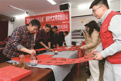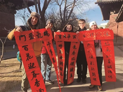 线下延展活动同样热烈。善化寺、大同府文庙两大景区及福寓苑社区新时代文明实践站,主办方邀请书法家现场挥毫,书写春联、送福字,社区居民与外地游客纷纷接过满怀祝福的楹联。在善化寺景区,来自意大利的五位外国友人手捧喜气洋洋的春联,笑逐颜开。
