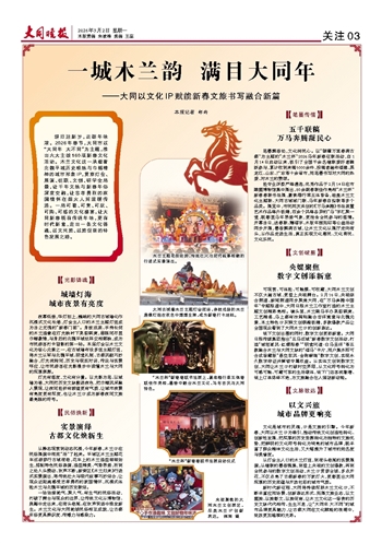 文化是城市的灵魂,IP是文旅的引擎。今年新春,大同以木兰IP为牵引,推动传统文化创造性转化、创新性发展,把深厚的历史资源转化为独特的文旅优势,把鲜明的文化符号转化为响亮的城市品牌,既丰富了群众精神文化生活,又大幅提升了城市的知名度与美誉度。