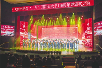 本报讯 (记者 辛雅君) 3月4日下午,大同大剧院小剧场内掌声雷动、暖意融融,“花开大同满芬芳”大同市纪念“三八”国际妇女节116周年暨颁奖大会在此隆重举行,近500名各界妇女代表欢聚一堂,共庆节日,致敬巾帼奋斗者。