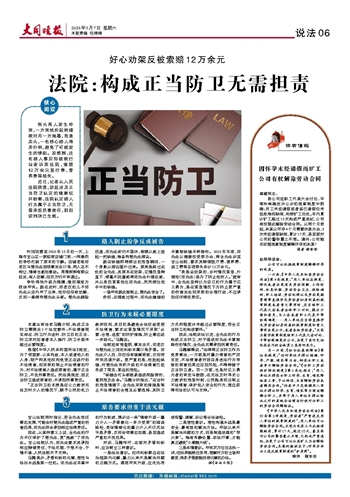 法院:构成正当防卫无需担责
