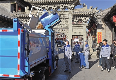 与此同时,全市的垃圾分类配套设施也在稳步推进。在大同古城,街头随处可见分类垃圾箱,核心区域还试点投放了一批新式智能垃圾箱。箱体采用与四分类标识对应的配色,设有感应开盖装置,为市民提供了更便捷的投放体验。