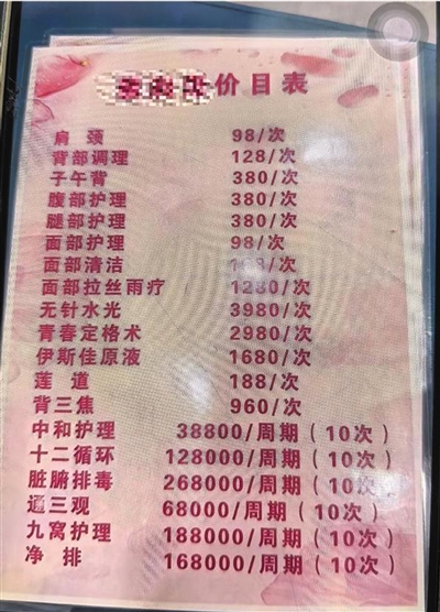自此,李桦便成了这家健康养生馆的常客。店里的工作人员不但嘘寒问暖,还陪她唠家常,提供的“服务”项目也逐渐从按摩转向所谓的“升阳”“肠清”“淋巴排毒”等,收费越来越高。
