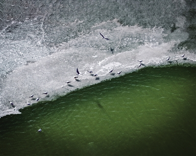 本报讯 (记者 双红) 连日来,成群结队的银鸥现身御河生态园,为初春的河畔增添了灵动的气息。3月17日上午,记者在北都桥与兴云桥之间水域看到,水面大部分仍覆盖着薄冰,只有橡胶坝附近的冰面渐融,数十只银鸥或在冰上休憩,或潜入水中觅食,或低空掠过水面,清脆鸣叫声此起彼伏。在蓝天碧水的映衬下,这些银鸥宛如跃动的白色精灵,吸引不少市民驻足观赏、拍照记录。