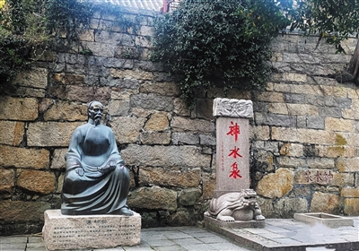 三清殿西侧有个关岳祠,就是蒲松龄客居时创作《崂山道士》《香玉》《崂山观海市》之处。关岳祠前有“神水泉”,拾级而上可见一株古山茶树已有花苞,树龄260多年,树下碑刻“绛雪”二字,这就是《香玉》中写到的耐冬花,如今是青岛市花。