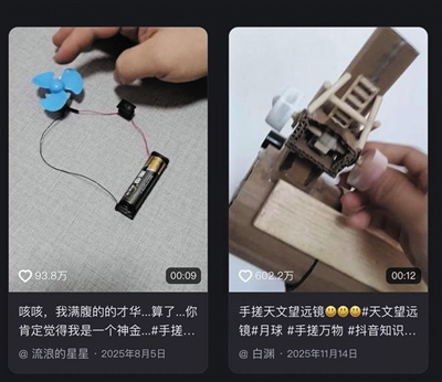 除了在软件领域发挥作用,AI与成熟产业链的结合,催生了制造业领域独特的“手搓党”现象。在短视频平台上,“手搓万物”话题播放量超50亿次。深圳中学生利用课余时间“手搓”探空火箭,突破10千米海拔高度;四川小伙儿李英豪历时近3年时间“手搓”的飞机,获得中国民用航空局航空器适航审定司的认可。“手搓”已从业余爱好变为科技创业的起点。