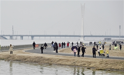 我市御河生态园西岸健身步道南延工程目前虽仍在建设中,却因绝美水岸风光被网友们亲切地唤作大同“环湖公路”。3月28日,小雨淅沥,市民打卡热情丝毫未减,他们雨中漫步,欣赏沿途春景,享受惬意好时光。