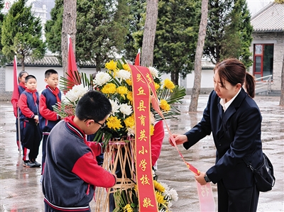 本报讯 (记者 辛雅君) 3月30日,灵丘县育英小学组织40余名师生走进平型关烈士陵园,开展清明祭扫主题活动,缅怀革命先烈的丰功伟绩,引导少先队员传承红色基因、厚植家国情怀。