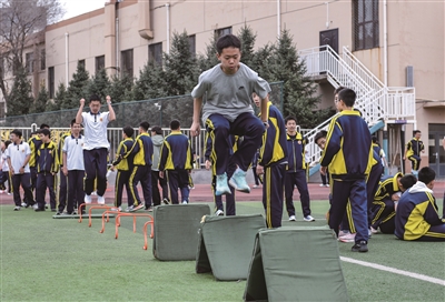 “学校每天都有合理安排,利用上下午大课间和体育课组织初三学生有针对性地进行训练,体育老师全程在岗指导,帮助学生调整训练状态。”大同七中副校长李月文介绍,从2013年起,学校就开始实施“大课间跑操+体育课+课外活动”模式,全面提升学生体能,在集体跑操后还有跳绳、跳远等个性化班级活动。“球类是去年新增的项目,对我们是个挑战,但学校训练安排很到位。”一名学生练完绕杆运球后说。