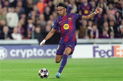 当地时间4月8日,在西班牙巴塞罗那进行的2025/2026赛季欧洲足球冠军联赛四分之一决赛首回合比赛中,西甲巴塞罗那队主场0∶2不敌西甲马德里竞技队。图为巴塞罗那队球员亚马尔在比赛中。
