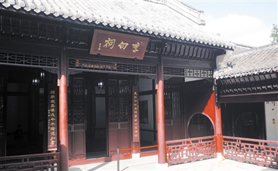 穿过松云居、叠翠楼,来到李白祠。祠中央摆放着一尊两米多高的李白站像。李白昂首仰望天空,双手反背身后,闲适自然,气宇轩昂。一双深邃的眼睛中,透出的是“天生我材必有用”的非凡自信。