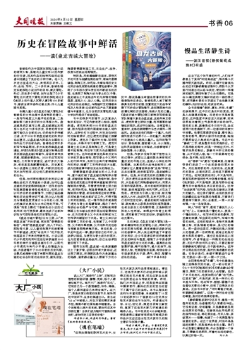 总的来说,《盘龙古城大冒险》是一部有趣独特的历史冒险小说,将商代历史的肌理与褶皱,绵密地编织进跌宕起伏的故事中,深入浅出地传递了丰富的历史知识,让少年读者自然而然地感受历史的鲜活与温度,增强了少年读者探寻盘龙城历史文化的兴趣。逼真的生活场景环境,精巧的情节,感人的细节,饱满的人物,充满温情的笔调,相信会给少年读者更多关于爱、勇气、责任、智慧与成长的启迪。 据《中华读书报》